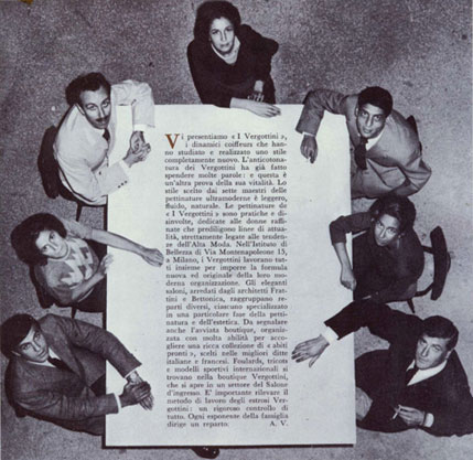 I sette vergottini nel 1962: foto fatta in occasione dell'apertura del negozio in via Montenapoleone.